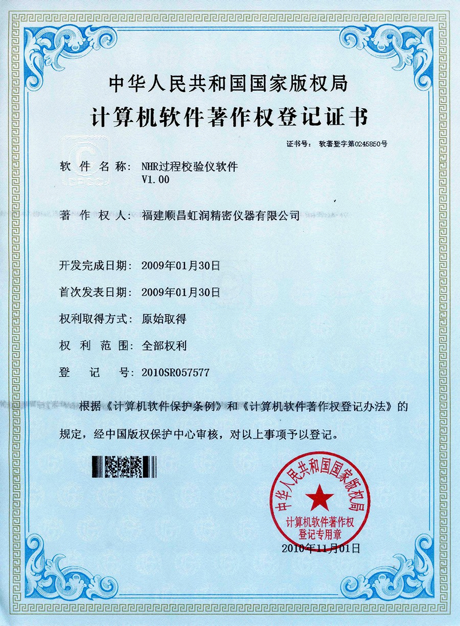 過程校驗儀 軟件登記證書 |