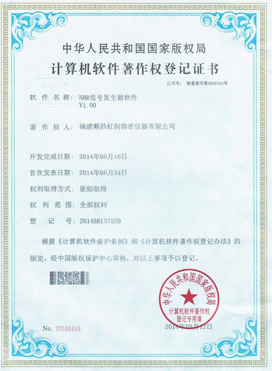 信號發生器 軟件登記證書 |