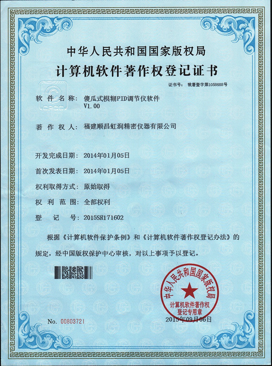 虹潤公司人工智能算式與模糊PID算式是虹潤公司應(yīng)用自主知識產(chǎn)權(quán)開發(fā)的新一代智能溫控儀表,產(chǎn)品榮獲一種人工智能調(diào)節(jié)器及其調(diào)節(jié)方法(專利號:2016107742425)、模糊PID控制儀及控制方法(專利號2015109378814)、一種智能化控制器及自整定方法(專利號2016103155465)、閥門自動、手動無擾動操作控制方法及裝置(專利號2007101540083)4項(xiàng)國家發(fā)明專利,NHR人工智能模糊PID調(diào)節(jié)器(版權(quán)登記號2009SR044371)傻瓜式模糊PID調(diào)節(jié)儀軟件V1.00 (版權(quán)登記號2015SR171602)2項(xiàng)軟件著作權(quán)。