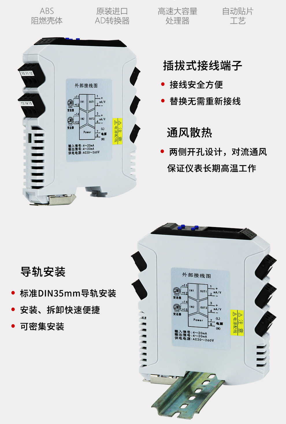 OHR-X33系列導(dǎo)軌式智能配電器給二、三線制變送器提供隔離的電源電壓,將變送器產(chǎn)生的直流電壓電流信號(hào),經(jīng)本隔離器轉(zhuǎn)換成所需的輸出信號(hào)至控制系統(tǒng)。寬電源設(shè)計(jì):20-260V交直流供電。配置高清顯示單元,通過(guò)輕觸按鍵設(shè)置每個(gè)通道的參數(shù)及每個(gè)通道之間的切換。